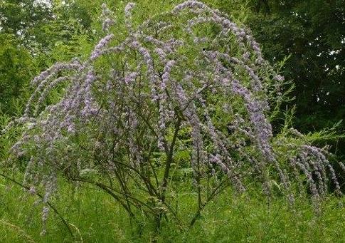 Gleichfalls Buddleja alternifolia, aber die Form argentea. Ich mag ihn wegen der silbrigen Blätter auch nach der Blüte sehr gern.
