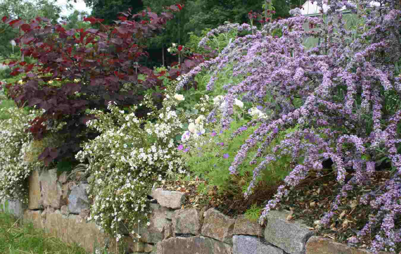 diese pflanzung auf der mauer gefällt mir besonders gut. rosetom, ist das eine bluthasel? tolle kombi