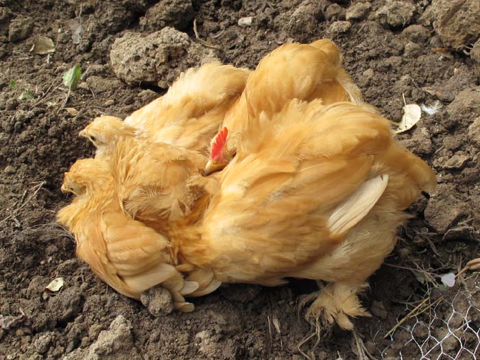 Nach dem anstrengenden Erdarbeiten wurde gekuschelt. Manchmal schaute der Kamm noch raus.