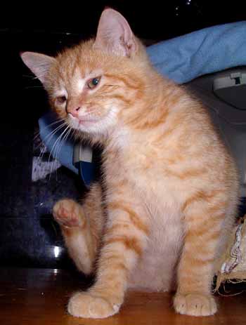 Nachdem er wieder relativ gesund geworden ist, hat er manchmal so ein gefährliches Glitzern in den Augen und sich heimtückische Anschleich- und Umwerfmethoden gegenüber seinem dicken, roten Bruder antrainiert 8)Sorgen macht uns grade das Mädel: Scheinbar war´s auf der Fahrt vorgestern zum TA (der ganz zufrieden mit ihnen war) zu kalt. Nun hat sie wieder tränende Augen, isst nicht und spuckt