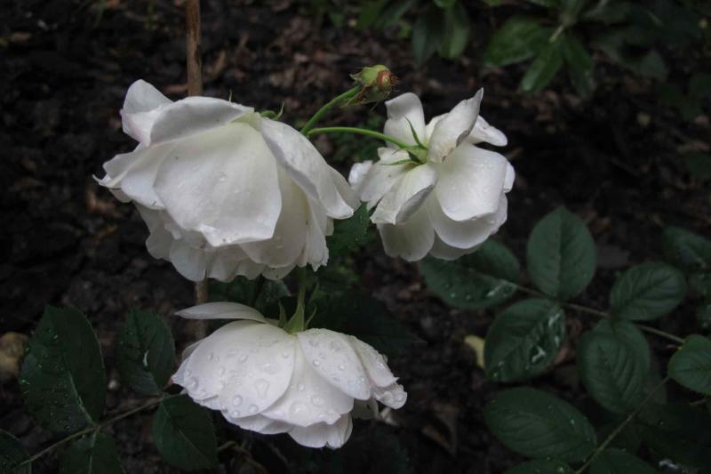 Alle drei (eine läßt sich noch Zeit) duften stark fruchtig und haben den Winter gut überstanden. Im Wuchs sind sie nicht ideal neben den Moschatas, aber die Farben passen durchaus.Aquarell, zu spät erwischt: