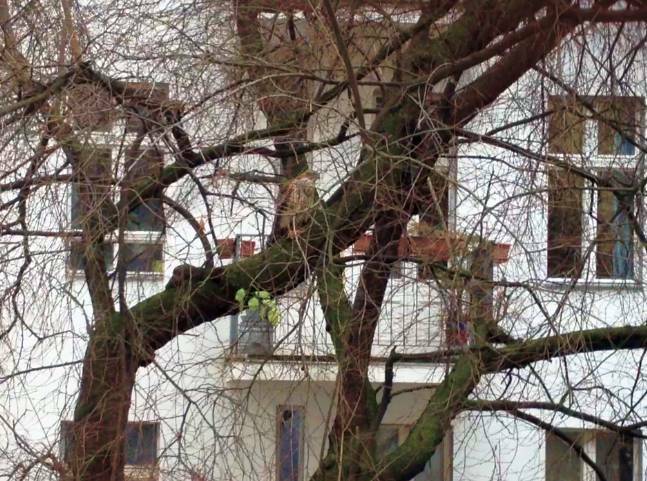 edit: nach konsultation eines vogelkundlers weiß ich jetzt, dass es ein habichtweibchen war, das jetzt balzt und mit der halben ratte zu beeindrucken suchte.... ein habicht oder bussard ...