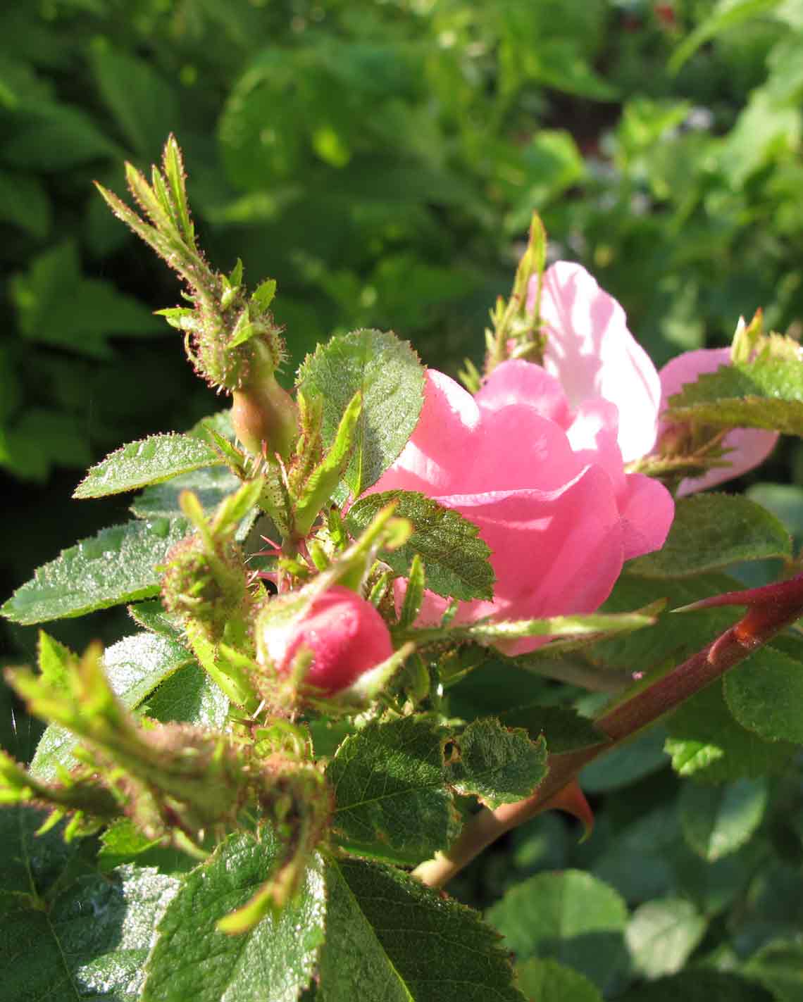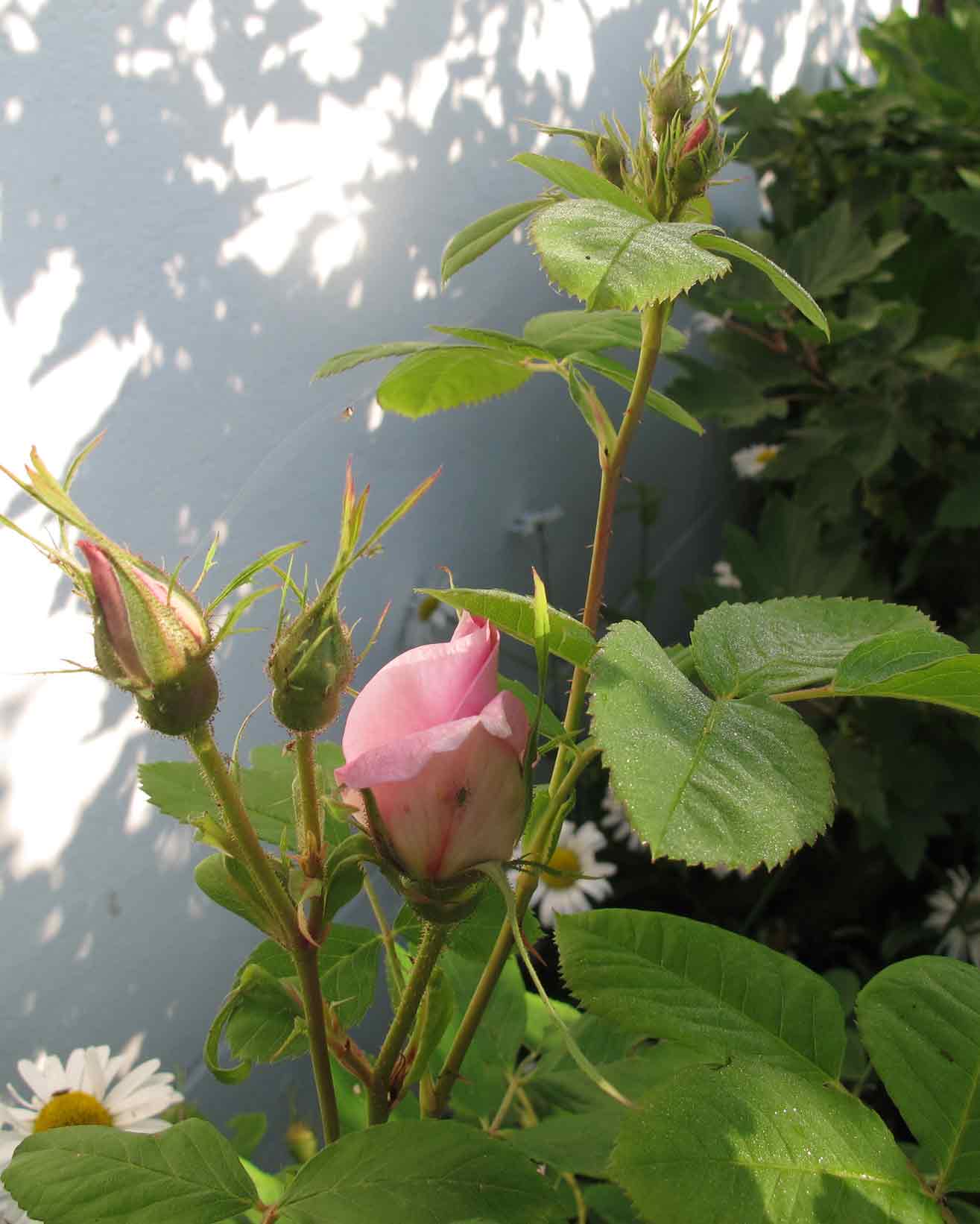 Zuletzt - vorläufig - Rosa Anderssonii, jahrelang von Wühlmäusen geplagt, immer wieder zurückgeschnitten, hat sich heuer zu einem hübschen kleinen Busch entwickelt. Ihre Blüten sehen aus wie von Complicata in klein, obwohl sie ein Caninaabkömmling ist.