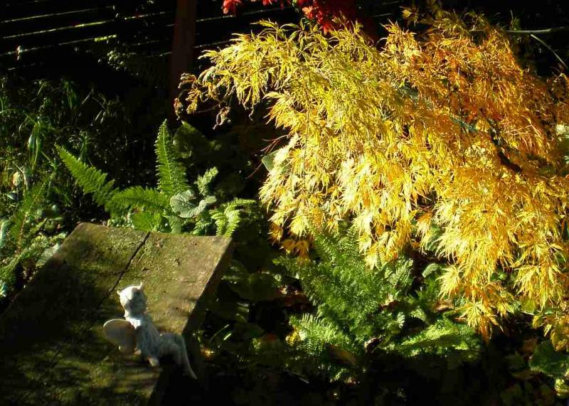 Wunderschöne Ahornbilder, Eveline. :DMein Lebkuchenbaum steht schon seit Tagen kahl da. Stewartia seit heute auch. :'(Einzig dieses Ensemble aus Parrotia, Acer palantum 'Dissectum' und Magnolia trägt noch ihr volles Herbstkleid.