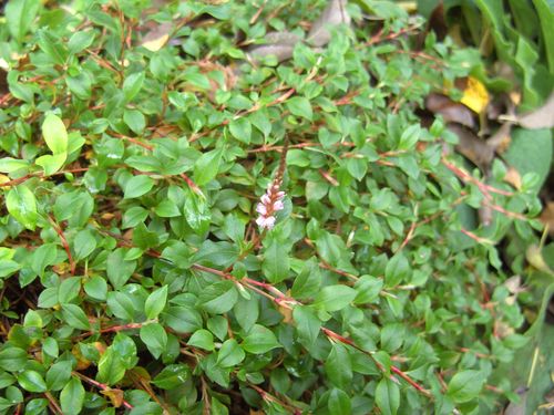 Dieser Knöterich entspricht zwar nicht dem Threadtitel, aber vielleicht darf er hier zur Bestimmung kurz verweilen.Die Pflanze ist absolut flach wachsend, sehr kleinblättrig und eigentlich blühfreudiger als auf dem Bild. Der Mangel an Blütenkerzen beruht vermutlich auf dem zu schattigen Standort.Diese ganz flach kriechende Art schmiegt sich sehr hübsch an Steine und überzieht sie im Laufe der Jahre. Sie soll aus dem Himalaja stammen.