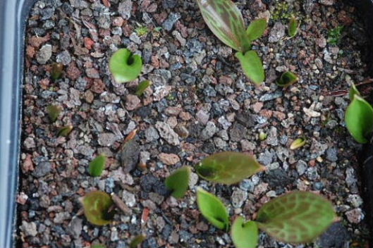 nachdem hier über die relativ problemlose aussaat der erythronium species der nordamerikanischen westküste berichtet wurde, habe ich nach meinen bisherigen pleiten mit erythronium mal solche arten ausprobiert. im kalten gewächshaus keimen jetzt im märz 2009 alle ende juni 2008 ausgesäten westküstenarten ...multiscapoideum, oregonum, howellii, citrinum + californicum. am weitesten ist oregonum, aber in den anderen aussaattöpfen rumort es auch erkennbar