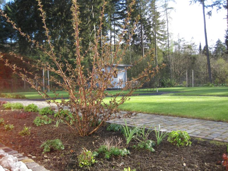 Die Wuchskraft vom 'Diabolo' kann man schnell unterschätzen. 2012 habe ich einen recht kräftigen jungen Strauch gepflanzt (der Beetstreifen müsste etwa 1,50 m breit sein):