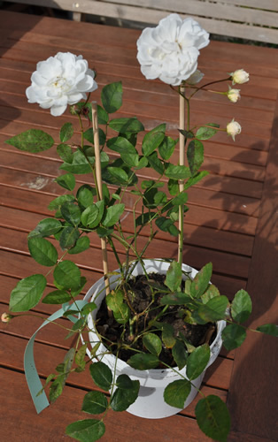 Nicht wirklich, dieses Jahr habe ich keine gesteckt. Die beiden verbliebenen Steckis sind vom letzten Jahr. Einer ist schon versprochen und der andere wird zu Testzwecken bei mir eingepflanzt.He, mit viel Glück kann ich vielleicht dieses Jahr noch die Erstlings-Blüte von Bridge of Sighs zeigen. Sie scheint sich tatsächlich zu berappeln und treibt fleißig aus. Statt der gewohnten 10 cm hat sie schon mind. 15 erreicht.Bist Du nun in Massenproduktion von Lions Rose gegangen, Carabea?![]()