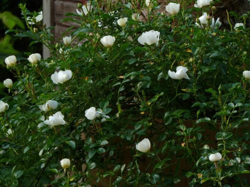 fyvie, Glückwunsch zum weißblühenden Wildröschen. Die langen Krakentriebe eignen sich wirklich gut zum baumeln.....wenn sie nur nicht so fiese kleine Stacheln hätten.Single Cherry gefällt mir auch gut.The Pilgrim