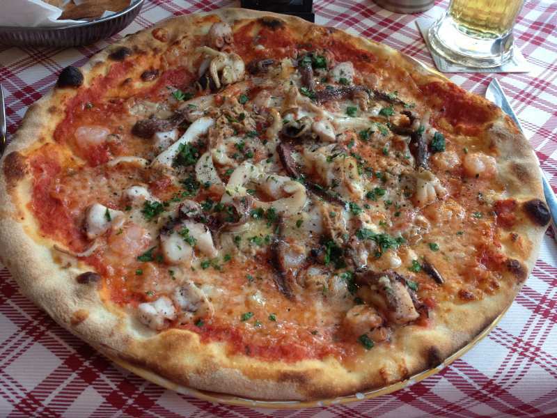 wir waren nach langer zeit mal wieder beim hausitaliener...die bruschetta habe ich vor vorfreude vergessen zu knipsen...das war meine vorspeise:gegrillter oktopus und kleine kalamare auf einem bett aus kartoffeln und tomaten