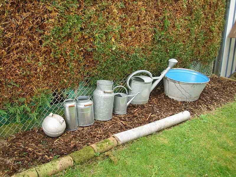 Hast Du vielleicht einen Ofen im Haus? Dann könntest Du entlang der Hecke Brennholz stapeln. Das würde sich optisch gut in den Garten einfügen und wäre obendrein ganz praktisch.