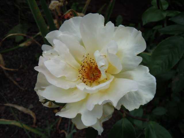 Hallo, vielleicht koennt ihr mir auch bei der Namensbestimmung einer Rose helfen.Sie blueht weiss, die Blueten haben ca einen Durchmesser von 10cm. Sie duften nur leicht, dafuer aber wunderbar fruchtig. Die Rose ist ca. 1,20m hoch. Die Rose steht bei mir vor einer Suedwand und hat dort scheinbar etwas gelitten (siehe Foto spaeter). Ich habe versucht Fotos von allem zu machen.Bild Bildaufgeblueht (mit Blitz vs. ohne)Bild BildKnospenBild BildHabitus und StachelnBildBlaetterBildBlaetter inkl. BlattschaedenHat vielleicht jmd. eine Idee.