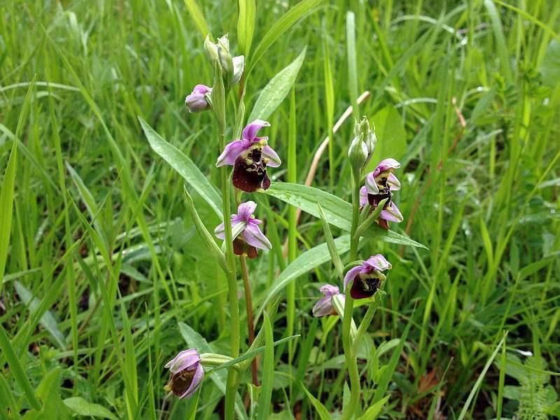 Diese ganze Orchideenbrut ist ziemlich promiskuitiv.Nach "Die Farn- und Blütenpflanzen Baden-Württembergs", Band 8, sind folgende Hybriden sicher nachgewiesen (Auswahl, beschränkt auf die in Liliental vorkommenden Arten, von denen wir mindestens eine gesehen haben):Aceras anthropophorum x Orchis militarisAceras anthropophorum x O. simiaAceras anthropophorum x. O. purpureaCephalanthera damasonium x longifoliaOphrys apifera x holosericeaO. holosericea x insectiferaO. holosericea x spegodesOrchis militaris x purpurea (der häufigste Orchisbastard in BW)O. militaris x simiaO. purpurea x simia
