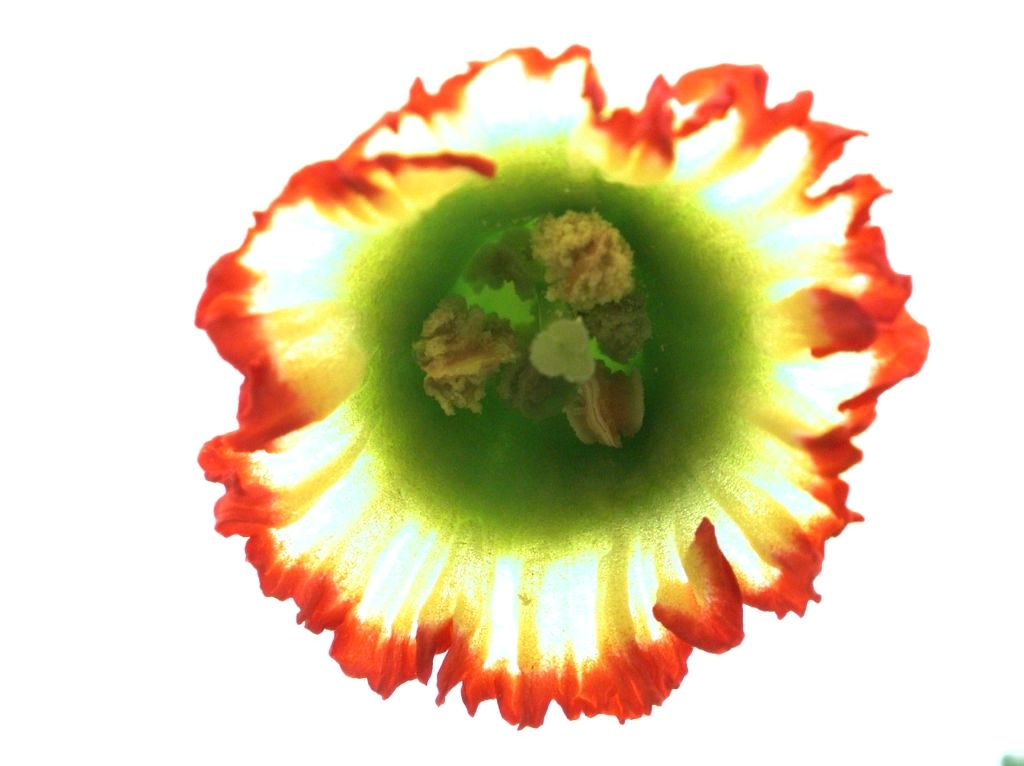 Die Blüte schaut zur Seite, deshalb nochmal ein Bild von oben, wo man gut sieht, wie weit die Blütenblätter zurückgebogen sind.