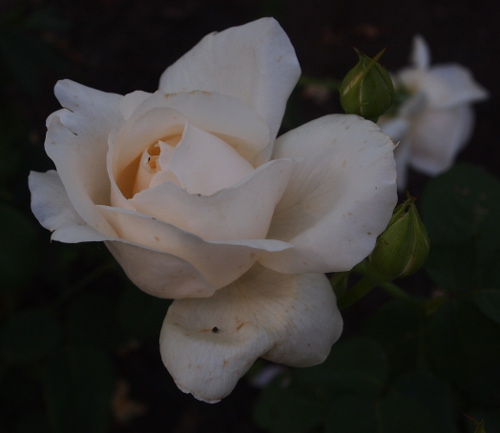 Noch einmal eine Weiße aus Russland. Eine Mischung aus Pernetiana und Remontant-Blut. Sie duftet wie eine reife Williams-Christ-Birne und produziert Blüten über Blüten. Sie heißt Belij Zhemchug (weiße Perle):