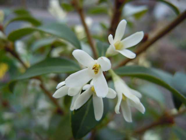 Osmanthus serrulatus ist völlig hart und schon am Verblühen.