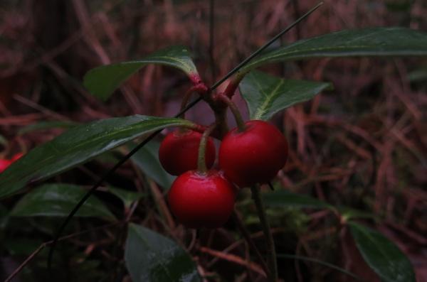 Beginnen möchte ich mit meinem Gaultheria-Fund in Südheide nicht weit von Celle.Im Herbst beim Pilze suchen fielen mir in einem Kiefernforst „Preiselbeeren“ mit unüblich geformten Blättern auf, die sich dort ausgebreitet hatten. Die Fläche betrug insgesamt sicher mehr als 20 m². Interessant war, dass sich die Fundstelle nicht am Waldrand und nicht in unmittelbarer Nähe irgendwelcher Gartenabfallabkippplätze befand. Stattdessen schienen sich die Pflanzen in der ganz durchschnittlichen entwickelten, von der Drahtschmiele (Deschampsia flexuosa) dominierten Kiefernforstkrautschicht ausgebreitet zu haben. Glücklicherweise hatte ich die Kamera dabei, denn erst beim Betrachten der Bilder ging bei mir der Vorhang auf: Gaultheria procumbens, die Niedere Scheinbeere. Obwohl ich sie mir im Garten schon seit Jahren geläufig ist, hatte ich sie in diesem naturnahen Zusammenhang nicht sofort erkannt.