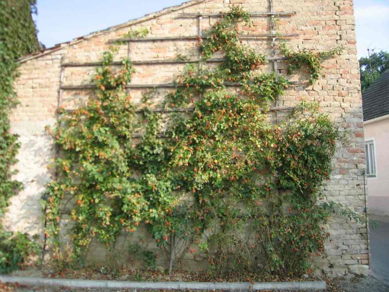 Ich habe es nicht bereut, sie ist trotz Sonnenplatz gesund, ihre Blüten verbrennen nicht so leicht wie die der meisten anderen Roten, sie hat einen feinen Wildrosenduft und die Blütezeit ist schier endlos. Das Laub ist eher grob und erinnert an ihre Abstammung von R. rubiginosa, im Spätsommer erfreuen massenhaft große orange Hagebutten - siehe das Foto aus Ll. Hier sieht man Fotos, die zeigen, wie gut sich ihre Triebe leiten lassen, solange sie noch jung sind, z.B. die von Rosaplant.Gruß an Heidelberg wäre auch eine Kletterrose in diesem Rot, sie ist insgesamt viel zarter, die Blüten haben nicht diese Leuchtkraft und duften kaum. Allerdings würde sie von der Größe her eher deiner ursprünglichen Vorstellung entsprechen und blüht sogar nach. Und dann gibt es - fast hätte ich sie vergessen - Paul's Scarlet Climber, eine früher sehr verbreitete Kletterrose in dieser Farbe. Alma de l'Aigle beschreibt ihr Rot als "mehr behaglich", während sie das von Flammentanz "aufregend" findet - dem schließe ich mich an