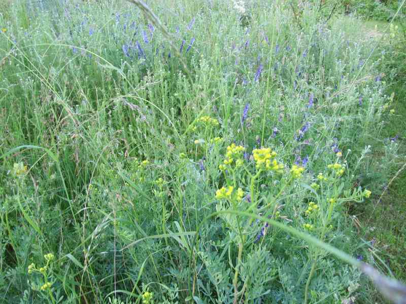 Die Weinraute hält sich gut und die Färberkamille breitet sich rasend schnell aus (leider).