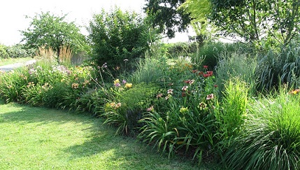 Die schattigeren Bereiche waren dann aber doch noch recht bunt und ich habe viele schöne Tagliliensorten gesehen und fotografiert. Mir haben die gemischen Beete sehr gut gefallen – viele Stauden kannte ich bisher nur aus dem Netz oder Fachzeitschriften (er hat z. B. Eine große Auswahl an Persicaria-Sorten) – hier mal ein paar Beispiele: