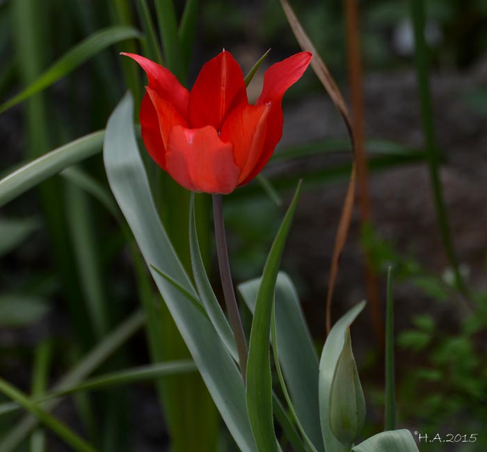 Das soll die Wildform von Tulipa kaufmanniana sein. Im Ramsch von Hoch bestellt, im November 2014 gepflanzt. Die Blüten sind die größten unter meinen Kaufmannianas. Naja, die wilden halt