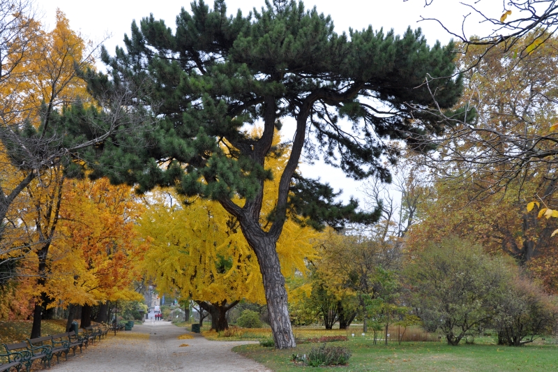 Bei meiner Wien-Reise gerade habe ich wenig fotografiert, bei dem Wetter war mir nicht so danach. Aber im Botanischen Garten habe ich den Fotoapparat dabei gehabt. Der ist sogar im November sehenswert, mit schönen alten Bäumen. Ich bin ja nich so der Gingko-Fan, aber die gelbe Herbstfärbung ist schön an einem grauen, kalten Novembertag.