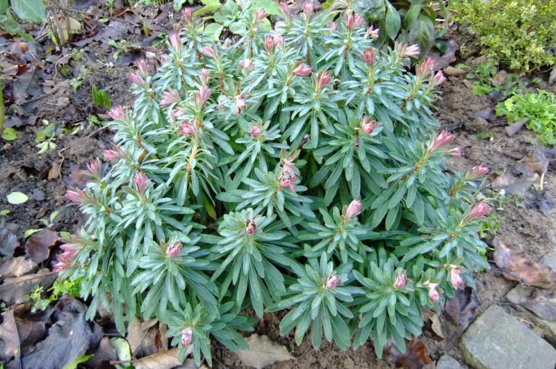 Für die erste Reihe hatte ich auch solche Pflanzen gesucht. Gut aussehen und wachsen Dianthus, Campanula portenschlagiana und Heuchera. Viel zu flach sind Thymus, serph. und Porzellanblümchen. Das Porzellanblümchen wollte ich vor Lavendel mal ausprobieren und bin überrascht, wie gut es wächst. Doch ich muß was ändern. In einem Bereich in rot-orange-gelb steht eine Euphorbia. Der Gärtner wußte den Sortennamen nicht. Diese Pflanze wächst schön kompakt und ich will im Frühling Stecklinge davon machen. Die Pflanze ist 2 Jahre alt und jetzt 30 cm hoch und hat 40 cm Durchmesser.