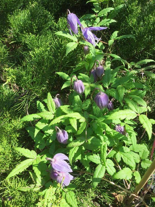 Ja, die ist echt schön und hat trotz der relativ dunklen Blüte ganz gute Fernwirkung, heißt ich kann sie vom Schreibtisch aus sehen... Bei mir blüht sie von Anfang an zuverlässig, aber schafft nie mehr als vier oder fünf Blüten. Wieviele Blüten macht deine so?die Clematis alpina var. fauriei 'Campanulina Plena'