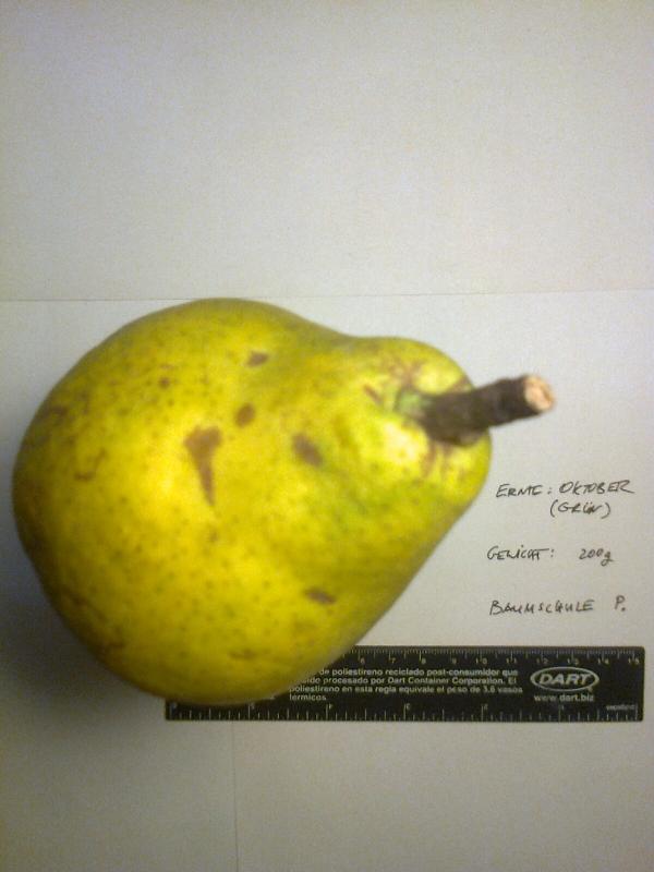 Optimal wäre ein Foto mit mehreren Birnen drauf, z.B. in die Sammelkiste hinein. Gut ausgeleuchtet in natürlichem Licht. Man sollte auch Stiele und Kelche sehen. Dann ein sauber fokussiertes Detailfoto von der Schale, schliesslich ein Schnittbild quer und längs durch die Kelchröhre bzw- achse.