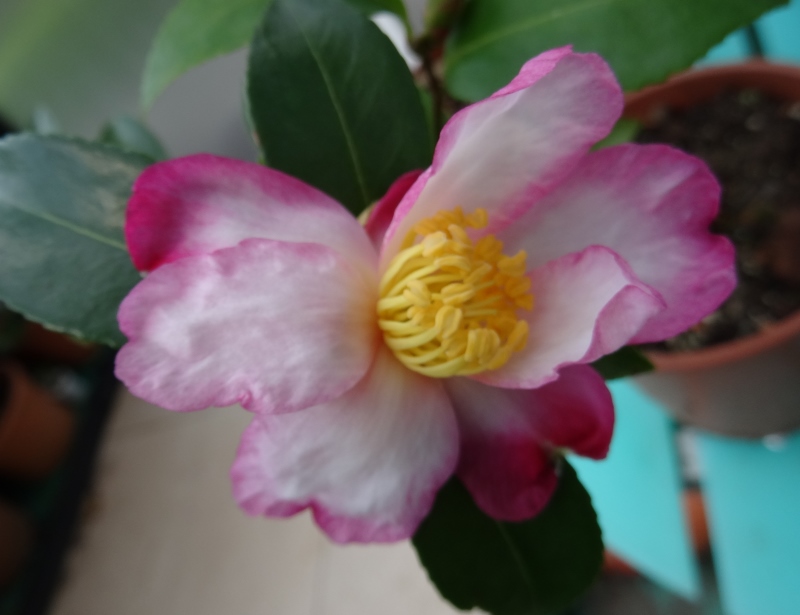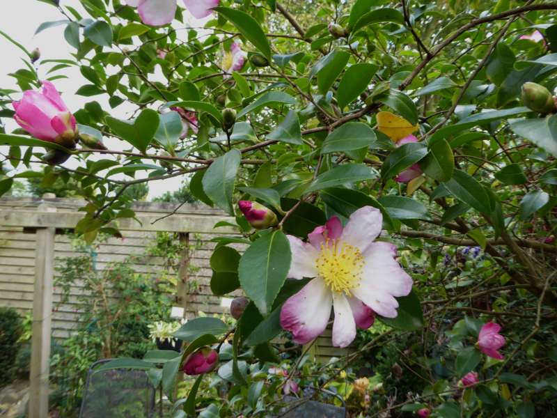 Diese C. sasanqua habe ich vor 20 Jahren namenlos (evtl. Rainbow) als kleine Pflanze erworben. Sie kam ziemlich schnell in den Garten und hat sich dort zu einem stattlichen Exemplar entwickelt. :D