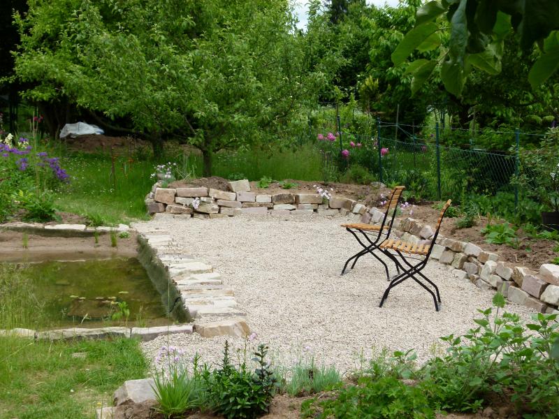 im nächsten Sommer ist alles noch etwas kahl, der Sitzplatz ist inzwischen mit Splitt belegt.