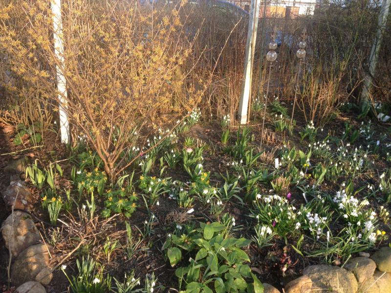 Bei mir ist es zz in einem beet auch recht einfarbig. Hamameli u eranthis sind leider fast durch ....