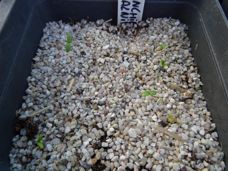 Anmerkung: Samen nicht bedecken mit Erde ('surface sown'). Topf war abgedeckt mit klarem Plastiktüte