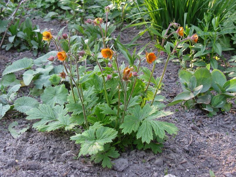 Andere Geums beginnen gerade mit den ersten offenen Blüten: Dark and Stormy und Carlskaer sind am weitesten.