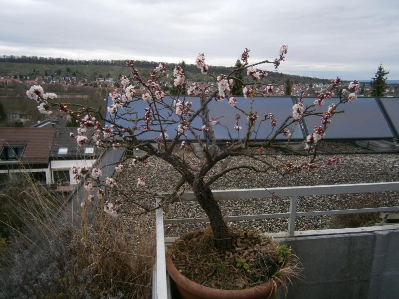 Die 2 getopften Zuckeraprikosen sollen jedenfalls mal so hübsch knorrig werden wie deine Topfaprikose und während einer event. Blüte bleiben sie dann solange im GH.