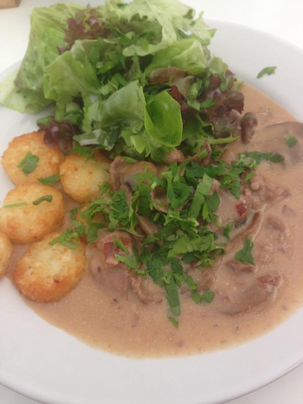 Es gab pilzrahmgeschnetzeltes, minirösti und Salat