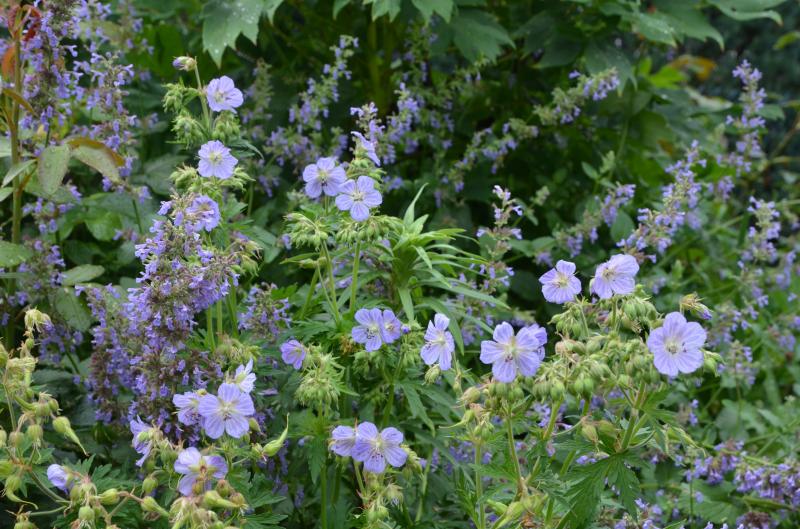 Diese Kombi hat mich schon Ende Mai erfreut: Geranium 'Mrs. Kendall Clarke' und Nepeta 'Zinser's Giant'.