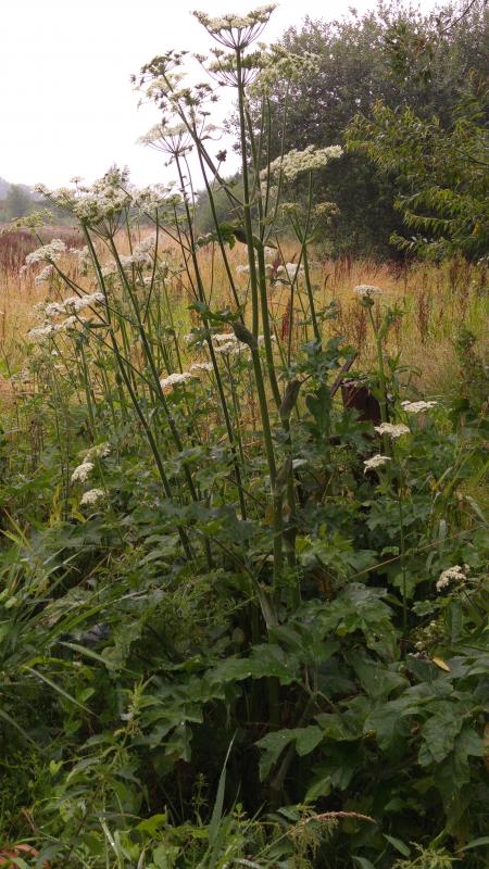 Stimmt, der Riesenbärenklau ist eigentlich unverkennbar, viel mächtiger, armdicke Stängel mit rötlichen Flecken, relativ glatt und unbehaart, aber tief gefurcht, riecht eigentümlich. In letzter Zeit habe ich eigentlich nirgendwo mehr welchen gesehen, die Ausrottungsmaßnahmen waren wohl effizient.