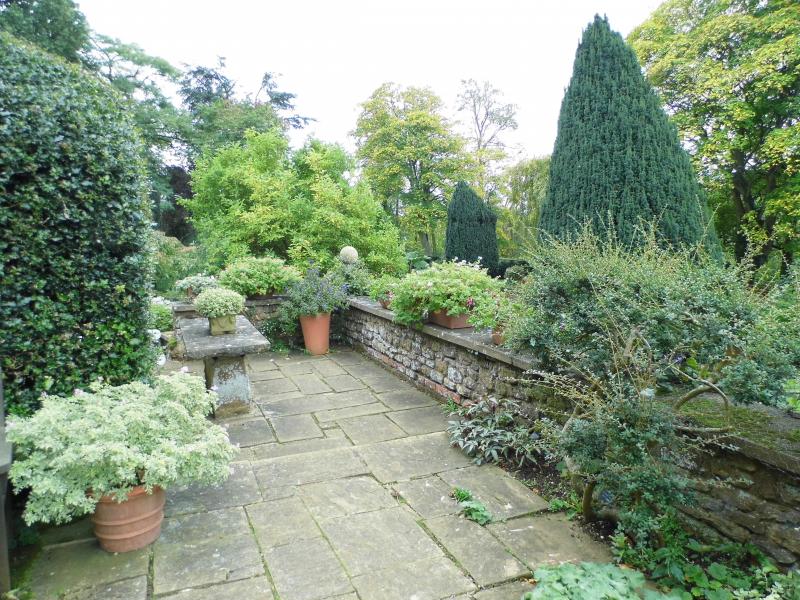 Auch im oberen tw. von Mauern gesäumten Garten um das Haus herum...und hier im Bild auch die Sterngladiolen