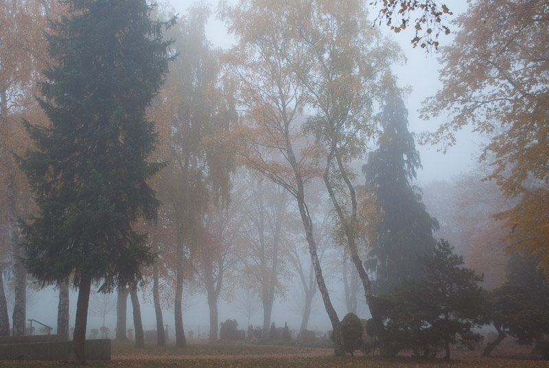 Im Herbst hätten die Kirschbäume dann eine prächtige Herbstfärbung, und was symbolisiert die Vergänglichkeit des Lebens besser als fallende Kirschblüten oder eben Herbstlaub? Zusammen mit Nebel im November sah das bei einem meiner Besuche wirklich fantastisch aus (siehe Foto).