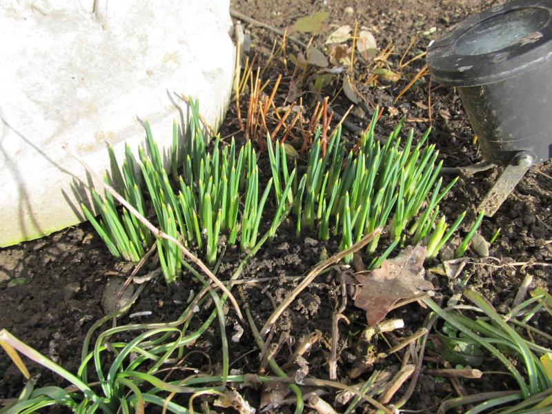Die Sonne zeigte sich heute nur sehr kurz, aber für ein paar Fotos hat's trotzdem gereicht. Wie Edelsteine leuchteten meine Iris reticulata 'Clairette', die das Walderdbeerbeet zwischen Wiese und geplanter Terrasse vor dem Schuppen auch in der kalten Jahreszeit etwas attraktiver machen sollen. Ansonsten habe ich dort noch Tulpen und Narzissen versenkt, und die beim Roden des Bereichs gefundenen Vergissmeinnicht-Pflänzchen. Ich bin mal gespannt, ob die kleine Felsenbirne dieses Jahr auch schon ein paar Blüten zeigen wird.