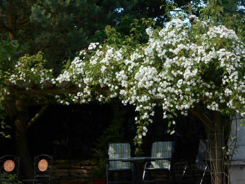 Für jemanden "der Rosen kann" , wären Rosen dort sicher prima. Aber ich kämpfe schon jedes Jahr mit `Bobby James`an der Pergola. ::) :-\