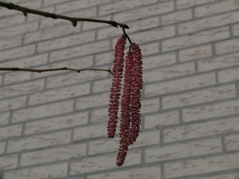 Corylus avellana, vom Eichhörnchen ausgesät, zeigte schon im Jugendstadium rote Belaubung. Heute fielen mir die erstmaligen Blüten auf, ebenfalls in rot. Der GG ist "begeistert" :-X ;D.