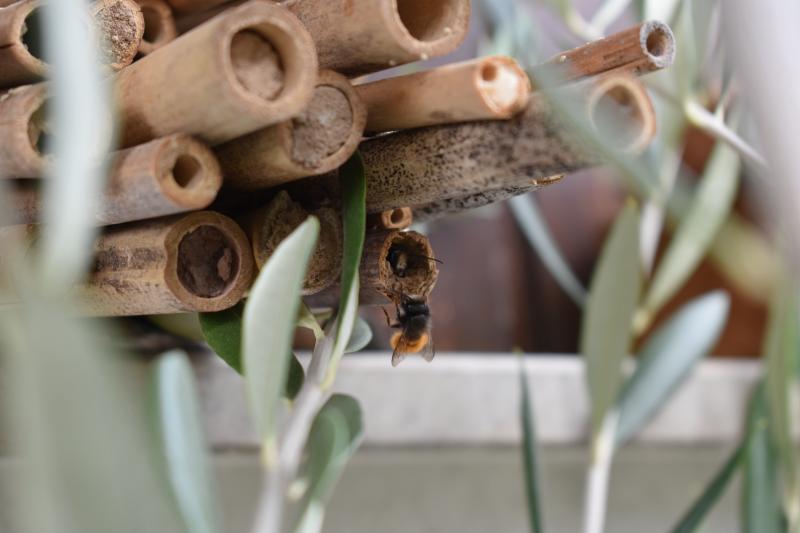 Ich hatte vor 2 Jahren versuchsweise trockene Brombeerstengel an verschiedenen Stellen im Garten angebracht, natürlich senkrecht, aber mit geringem Erfolg. Daraufhin habe ich an der Brombeere mehr trockene Ranken drangelassen, vorallem in etwa senkrecht orientierte. Die sind sehr gut angenommen worden, von winzigen kleinen Bienen, die ich auch an den Blüten beobachten konnte. Wo sonst soll die Biene nach einem Nistplatz in Brombeerranken suchen?
