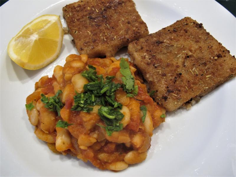 Den Fisch habe ich mariniert (Zitronensaft, gehackte in Salz eingelegte Chili, Pfeffer, Knoblauch). In der Zwischenzeit habe ich eine Dose Tomaten und kleine frische Tomaten ( fair gehandelt aus dem Supermarkt, richtig lecker) mit in Olivenöl andünsteten Zwiebeln und Bleichsellerie vorgeköchelt . Den Fisch habe ich in Öl/Butter mit der Hautseite nach unten angebraten und dann mit der Hautseite nach oben auf das Gemüse gelegt und im Backofen gegart. Dazu gab es gedünsteten Reis. Köstlich war das!