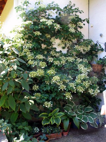 Die einzigen Hortensie, sie bei mir schon blüht bzw,. fast damit fertig ist, ist die Kletterhortensie Hydrangea anomala subsp petiolaris und die ist nicht nur traumhaft schön, sie duftet dermaßen, daß es einem fast den Atem raubt