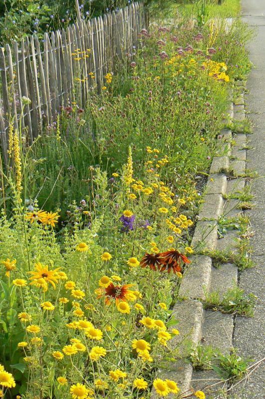 Und wenn sie verblüht ist, übernehmen an der anderen Seite Buddeleia, Indiandernessel, Rudbeckia und wer sonst gerade so Zeit hat