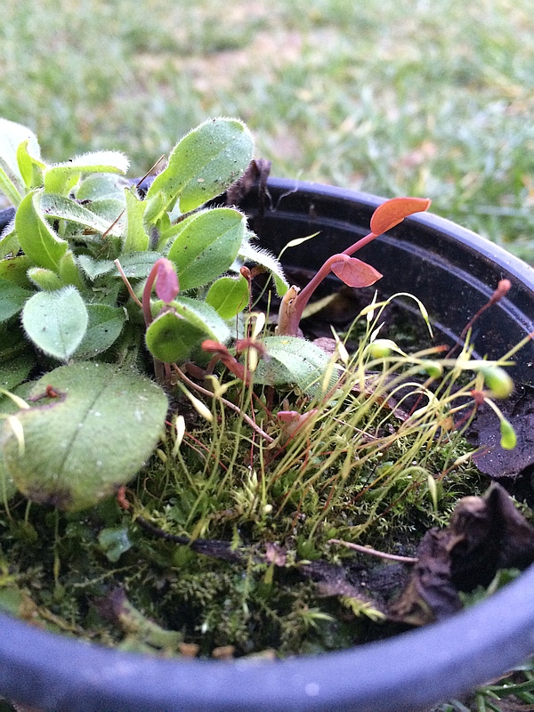 Viel 'Müll' möchte wachsen, nur die kleinen Jeffersonia (diphylla ?) überzeugten mich, das Töpfchen