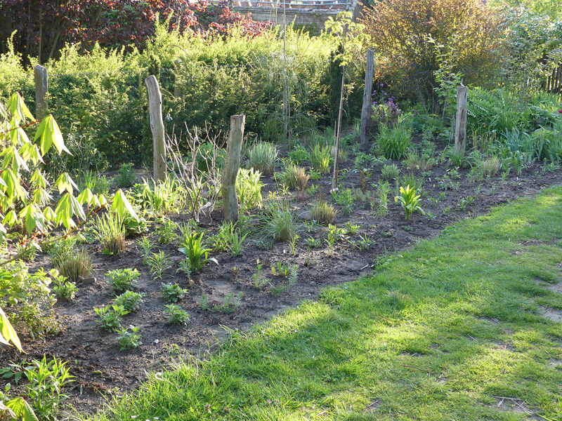 Nachdem gestern die letzten Stauden geliefert wurden (und zum Glück alles verfügbar war), habe ich heute das neue Beet fertig bepflanzen können. :)