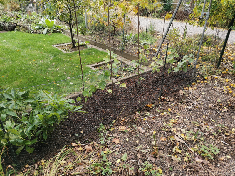 Habe gerade Johannisbeeren gepflanzt, überständige Steckhölzer. Wurde Zeit, das die mal wieder aufgenommen wurden. Es ist nicht gut, wenn die mit 5cm Abstand zueinander anfangen zu fruchten. Obendrüber kam Laubkompost und die werden als Spindeln gezogen, also nur ein Trieb rund 2m hoch mit kurzen Seitenästen.